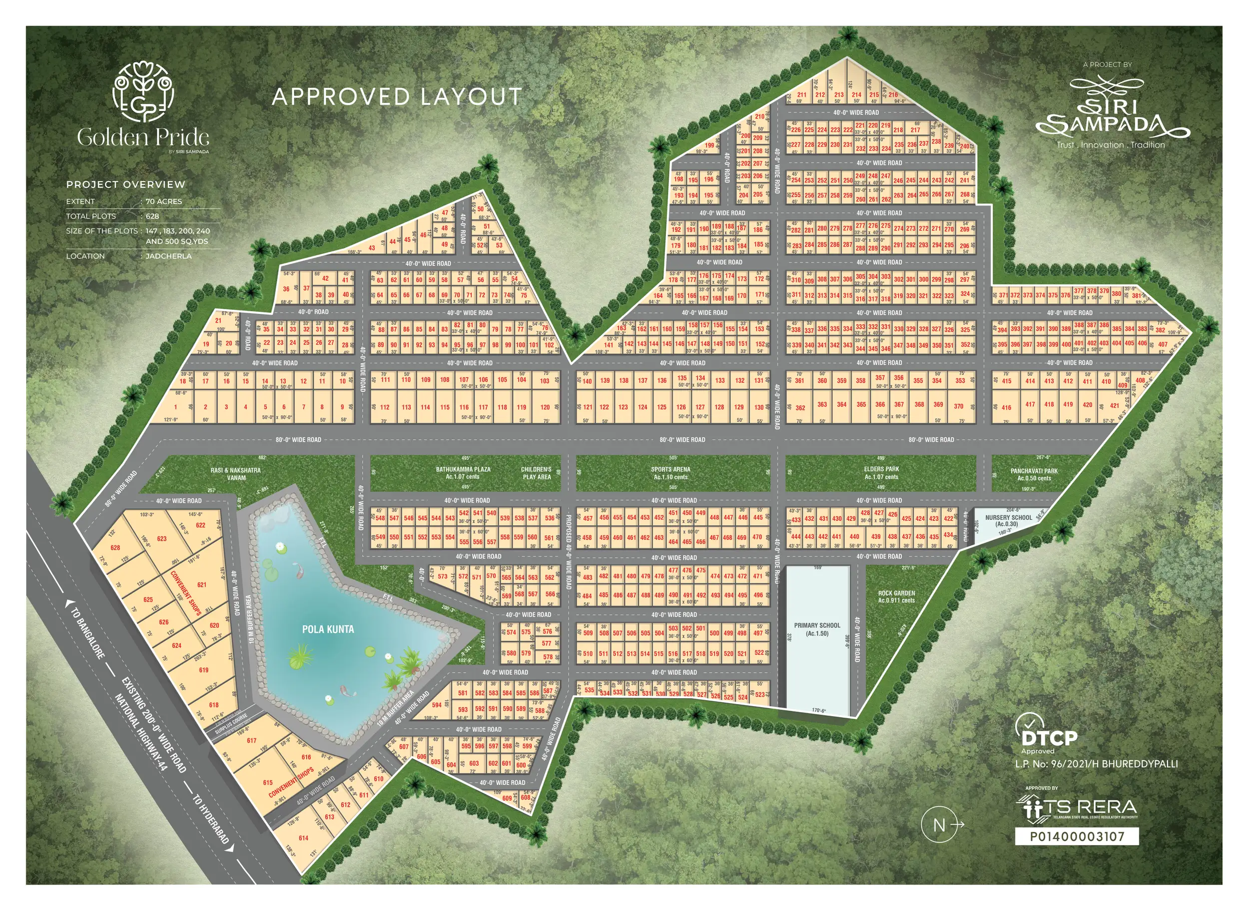 70 acre residential gated community plots in Jadcherla ranging from 147-500 sq.yds.
